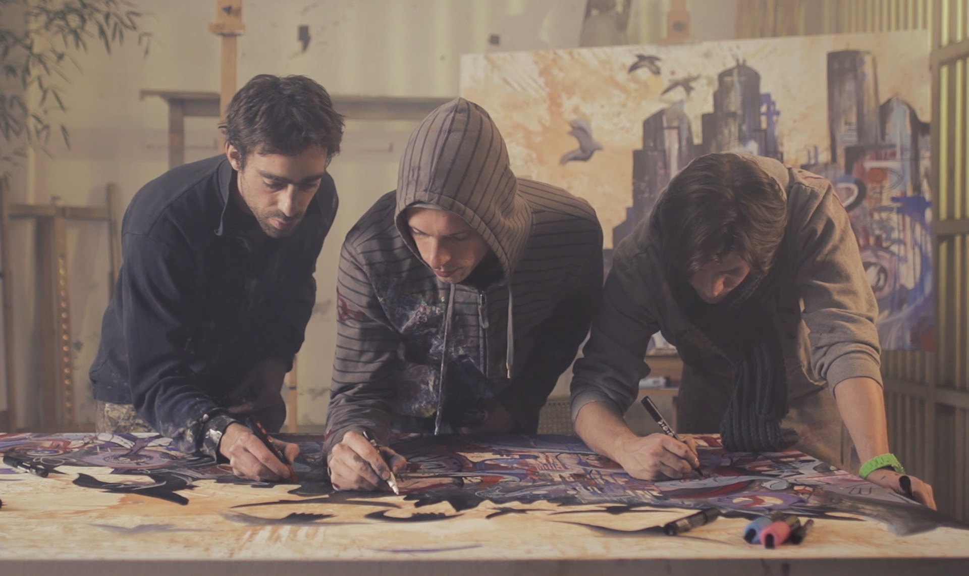 33% is an artistic collective composed by Cid (Cédric Philippi), Dardelet (Philippe) and Vébé (Thibaut van Boxtel). We always create together, mixing our different styles on various supports (canvas, paper, skateboard, wood,...) using multiple tools (pencils, markers, acrylics, collages,...).