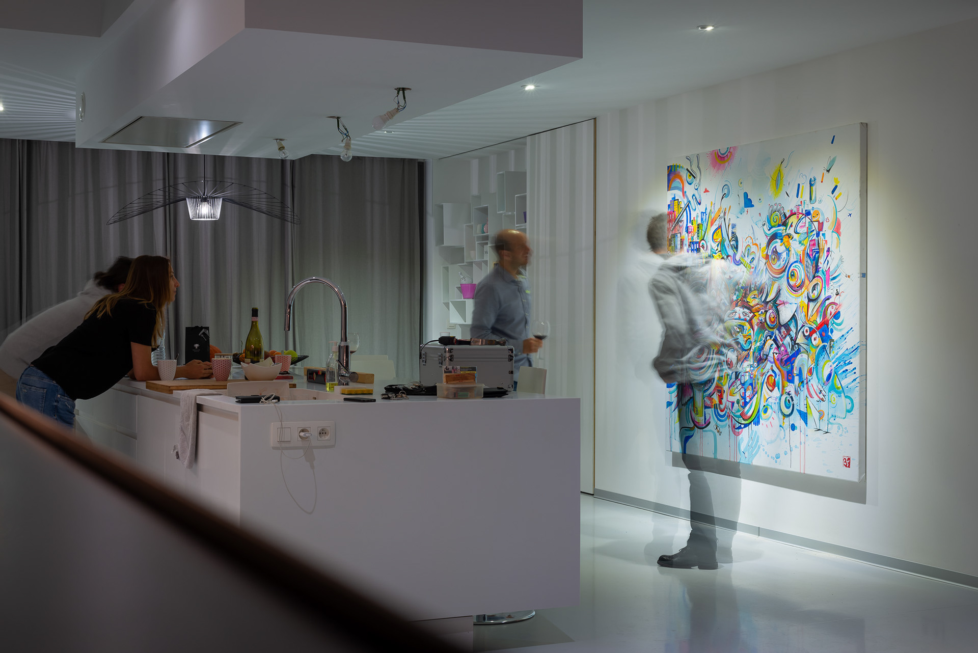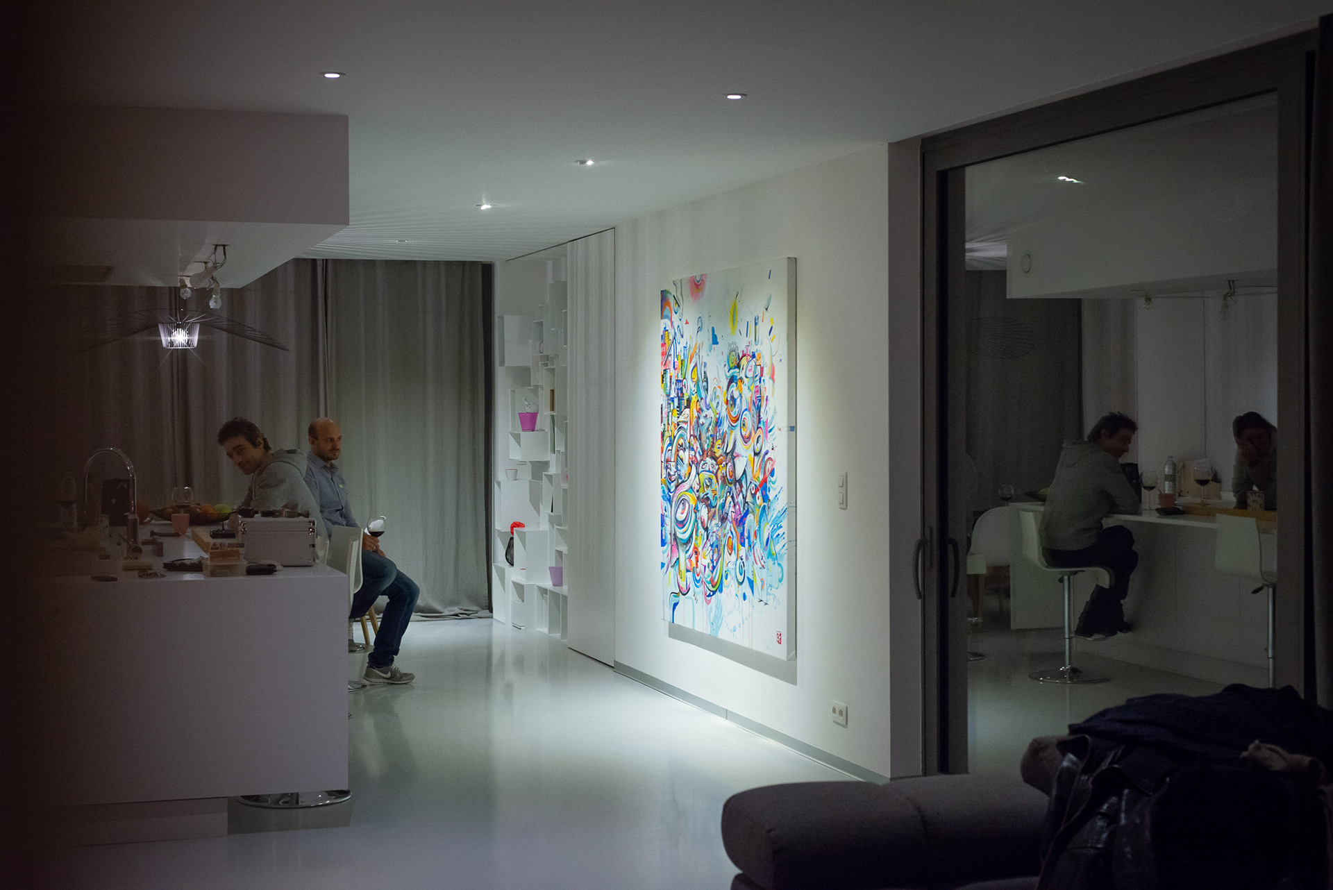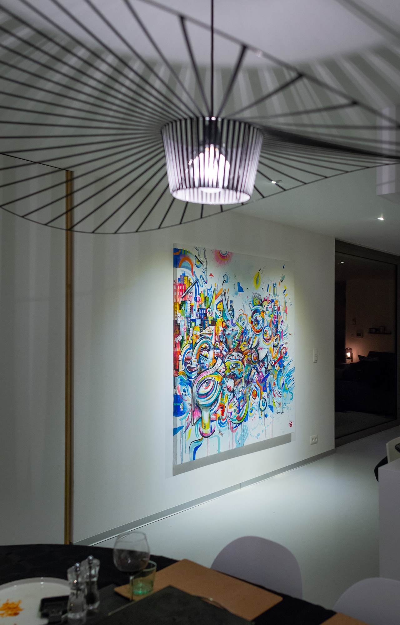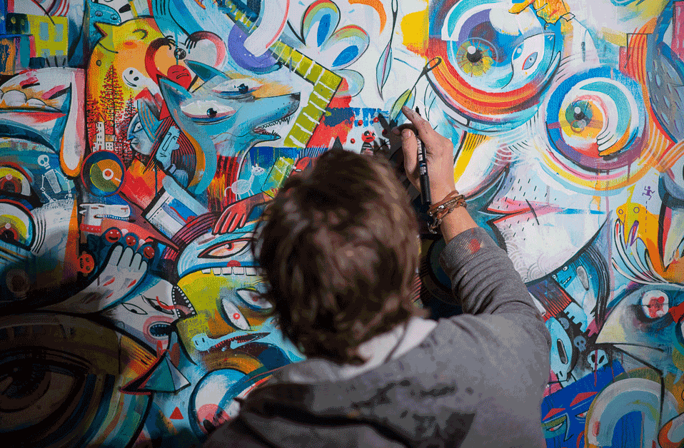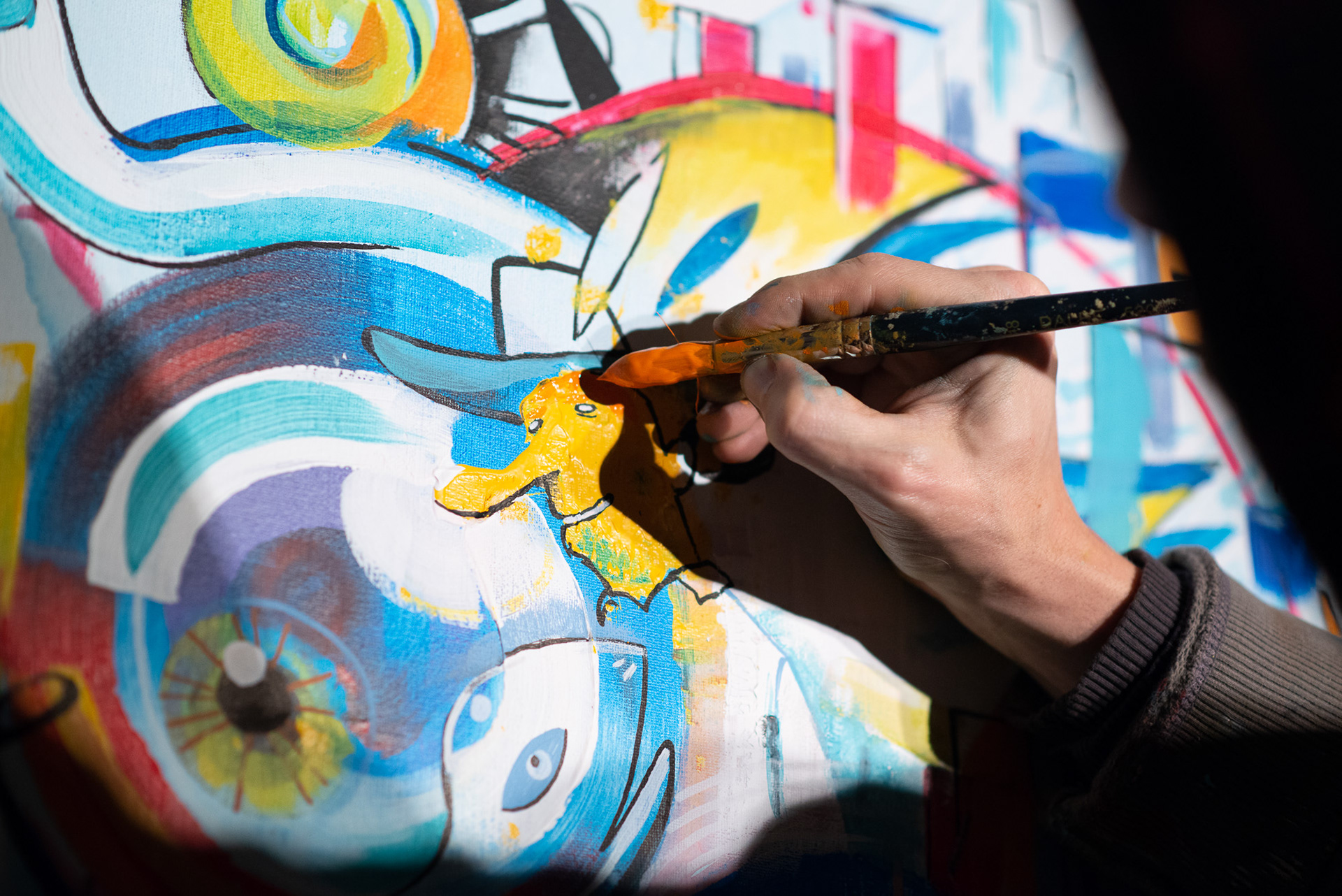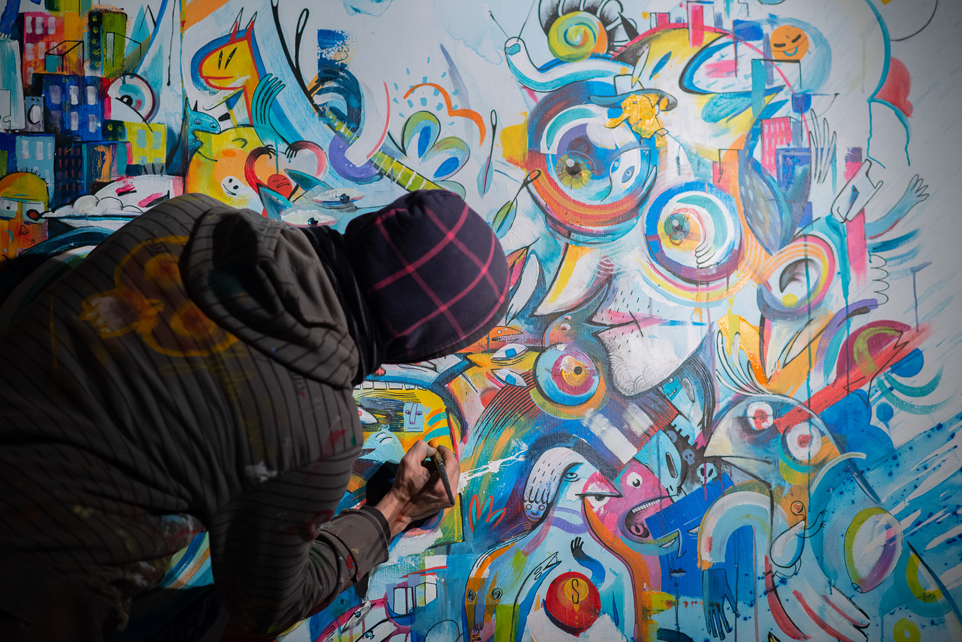 a mixed media artwork composed by three artists on a canvas 180/180cm