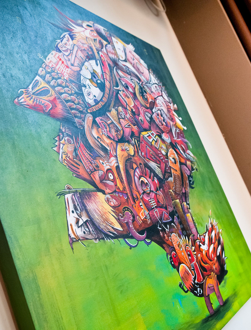 mixmedia on canvas ( collages, acrylics, markers, pencils, ink,..)