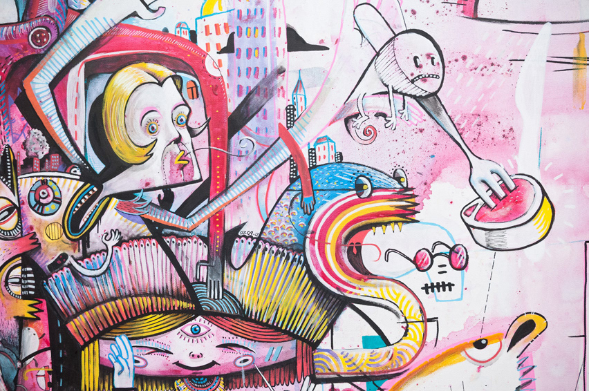 mixmedia on canvas ( collages, acrylics, markers, pencils, ink,..)